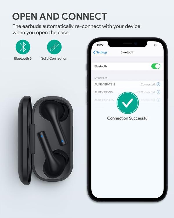 Bezprzewodowe słuchawki douszne Bluetooth AUKEY EP-T21S Black True Wireless Etui z powerbankiem Move Compact II Surround Sound 3D Precyzyjny wbudowany panel dotykowy...