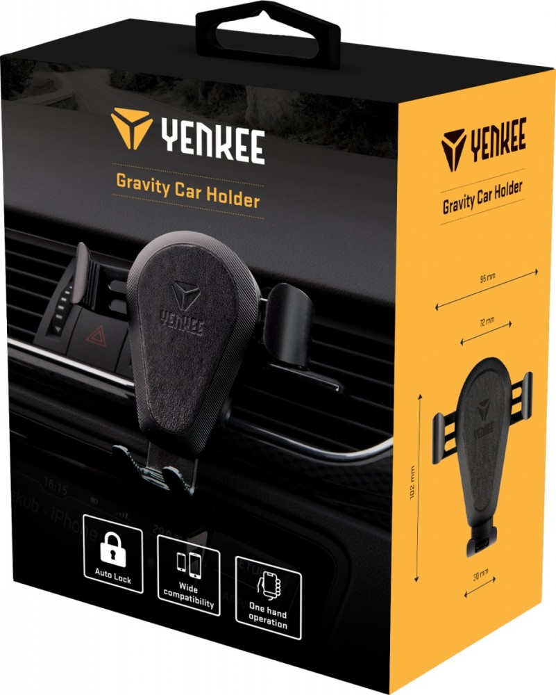Grawitacyjny uchwyt na telefon z mocowaniem na kratki wentylacyjne pojazdów kompatybilny z większością dostępnych telefonów. Uchwyt blokuje się automatycznie przez ciężar własny telefonu na zasadzie grawitacji. Trzy ramiona uchwytu mocują telefon i utrzymują go w stabilnej pozycji podczas jazdy. Mocowanie na kratkę wentylacyjną umożliwia łatwą i bezpieczną obsługę telefonu komórkowego bez ograniczania widoczności kierowcy. Antypoślizgowa powierzchnia uchwytu ochroni telefony przed zadrapaniem i wyśliźnięciem. Szerokość: 65-82 mm