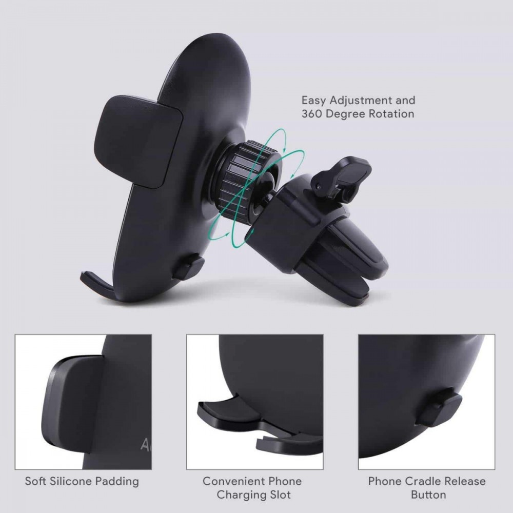 Bezpiecznie podłącz smartfona lub GPS do kratki wentylacyjnej w samochodzie. Pasuje do większości standardowych otworów wentylacyjnych oraz do poziomych i pionowych...