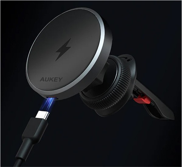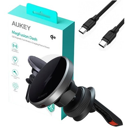 AUKEY HD-MC13 uniwersalny uchwyt magnetyczny z ładowarką bezprzewodową Qi2 15W do samochodowej kratki nawiewowej (BARDZO MOCNY) z dodatkowym zatrzaskiem + kabel AUKEY USB-C 1m...