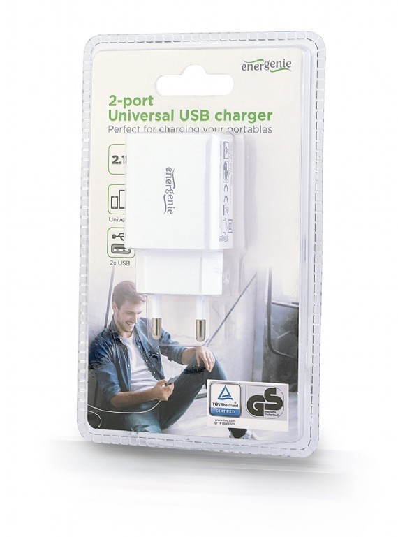 Uniwersalna 2-portowa ładowarka USB, 2,1 A kolor biały EG-U2C2A-03-W