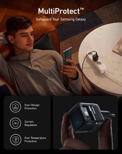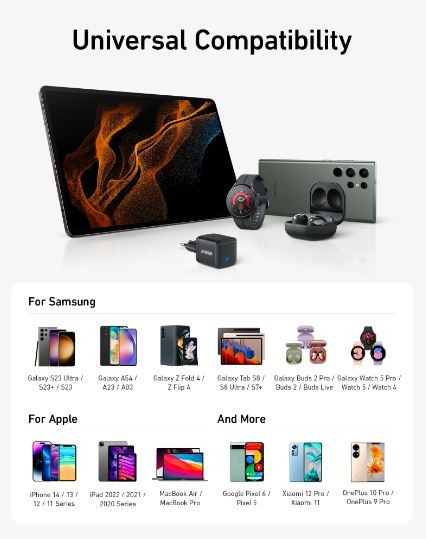 Ultra High Speed: Obsługuje maksymalnie 45 W Super Fast Charge 2.0 dla Samsunga, dzięki czemu możesz w pełni naładować Galaxy S23 Ultra w niecałą godzinę. Uwaga: Superszybkie ładowanie 2.0 wymaga kabla ładującego 5A (brak w zestawie). Doskonałe bezpieczeństwo dzięki MultiProtect: Zawiera łącznie 10 funkcji bezpieczeństwa, w tym ochronę przed zwarciem, ochronę przed wysokim napięciem i kontrolę temperatury, aby chronić Ciebie i Twoje podłączone urządzenia. Zasilane technologią GaN: dzięki wyższej efektywności energetycznej i ulepszonemu odprowadzaniu ciepła azotek galu (GaN) sprawia, że nasze ładowarki są mniejsze i bezpieczniejsze, bez utraty mocy. Uniwersalna kompatybilność: Wyposażony w technologię PowerIQ 3.0, która zapewnia zoptymalizowane ładowanie praktycznie każdego urządzenia mobilnego, w tym telefonów, tabletów i innych.