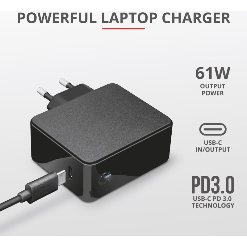 Łatwa w użyciu i niezawodna ładowarka do laptopa Trust Maxo 61W ułatwia ładowanie w parku. Dzięki 2-metrowemu kablowi USB-C zapewnia bezproblemową kompatybilność z Apple MacBook. Naładuj laptopa - lub dowolne inne urządzenie USB-C - szybko i stabilnie, aby szybko odzyskać pełną moc.