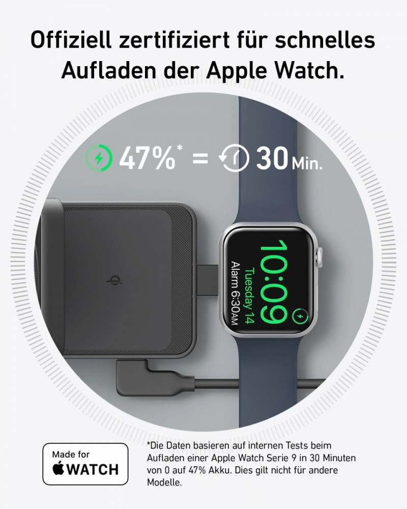 Oszczędzaj swój czas: Naładuj baterię Apple Watch Series 9 do 47% w zaledwie 30 minut dzięki certyfikatowi MFW znacznie szybciej niż konwencjonalne ładowarki.