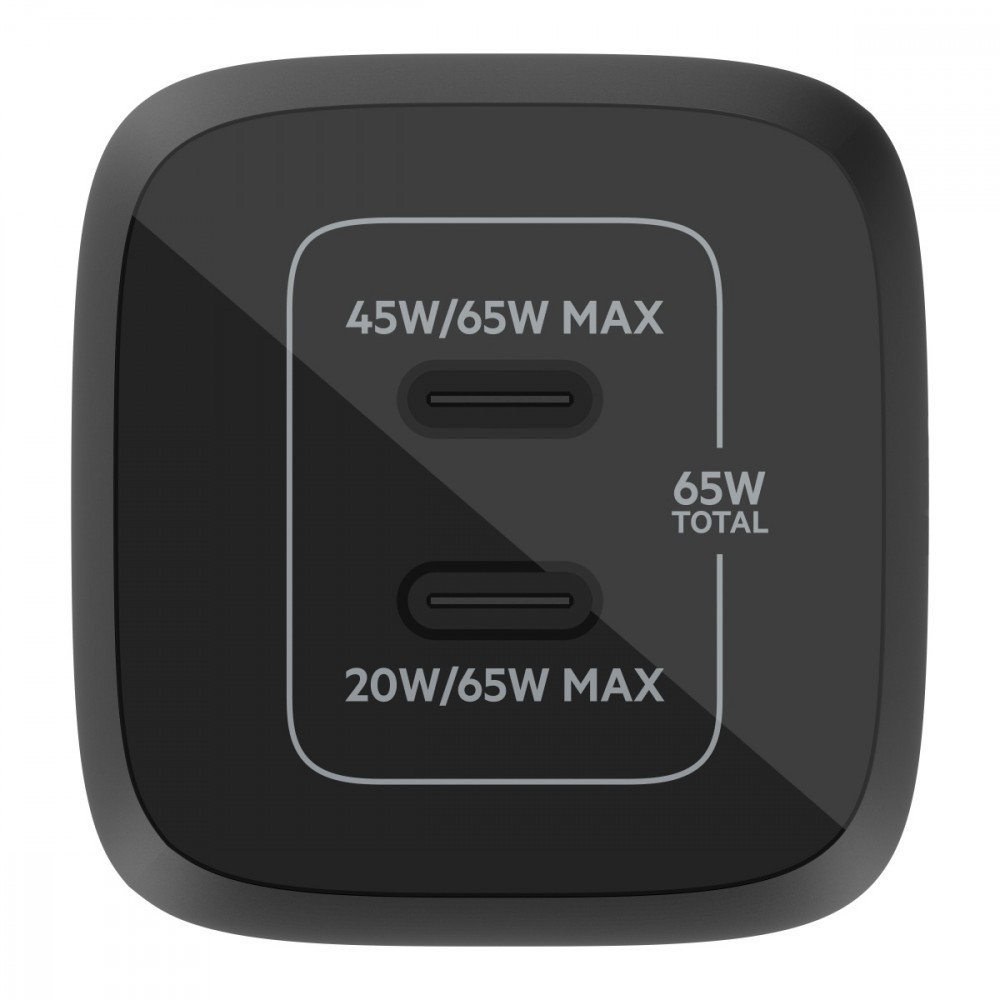 Ładowarka podwójna ścienna 65W USB-C GAN z PPS czarna