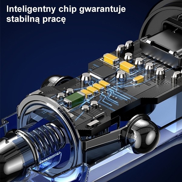 Dwa porty o łącznej mocy 30W gwarantują szybkie ładowanie. Porty USB są kompatybilne z protokołami fast charge takimi jak QC/AFC/SCP/FCP/Apple2.4 wspierając szybkie ładowanie dla modeli Huawei, Apple, Xiaomi, Honor, OPPO, Samsung, itd. Bezpieczeństwo zapewnia specjalny czip, który kontroluje temperaturę chroniąc przed zwarciem, wysokim napięciem, przegrzaniem itp. Ładowarka posiada ciepłe lampy LED, które zapalają się w momencie podłączenia.