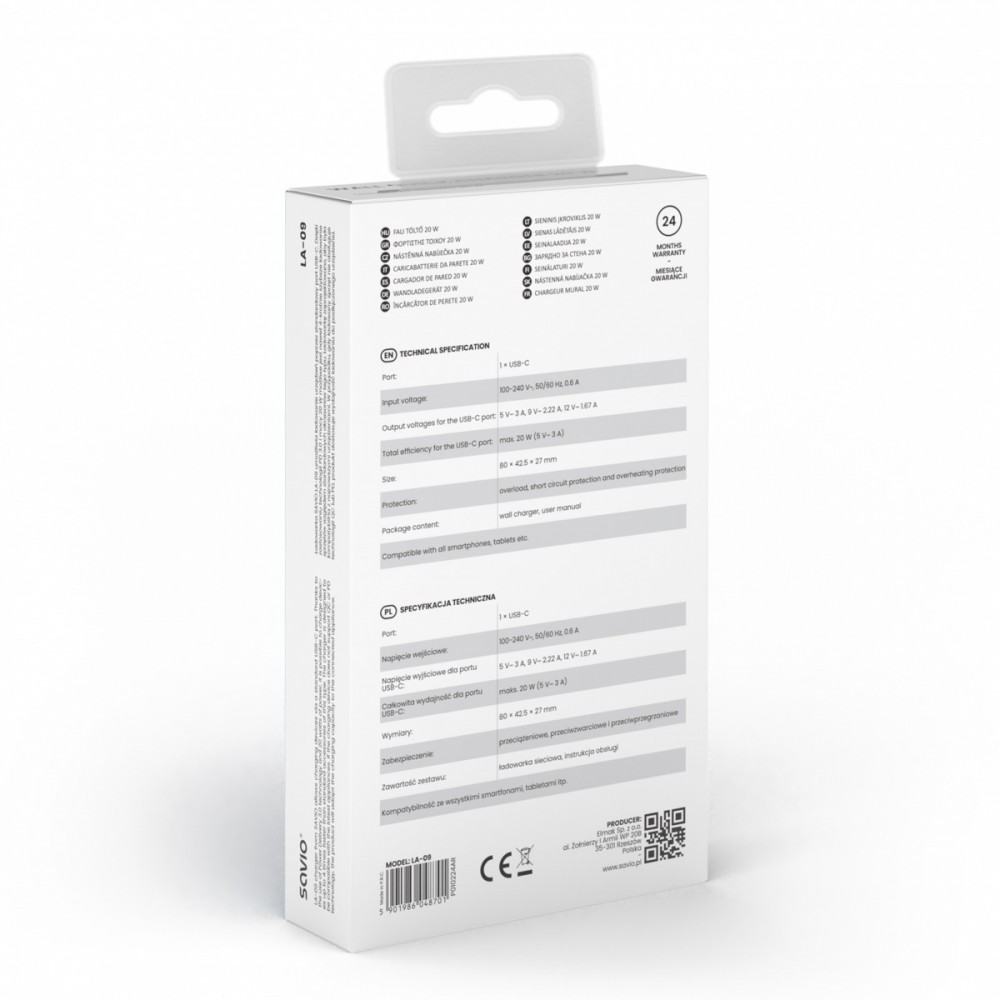Akcesoria w zestawie: Ładowarka sieciowa SAVIO LA-09 Instrukcja obsługi