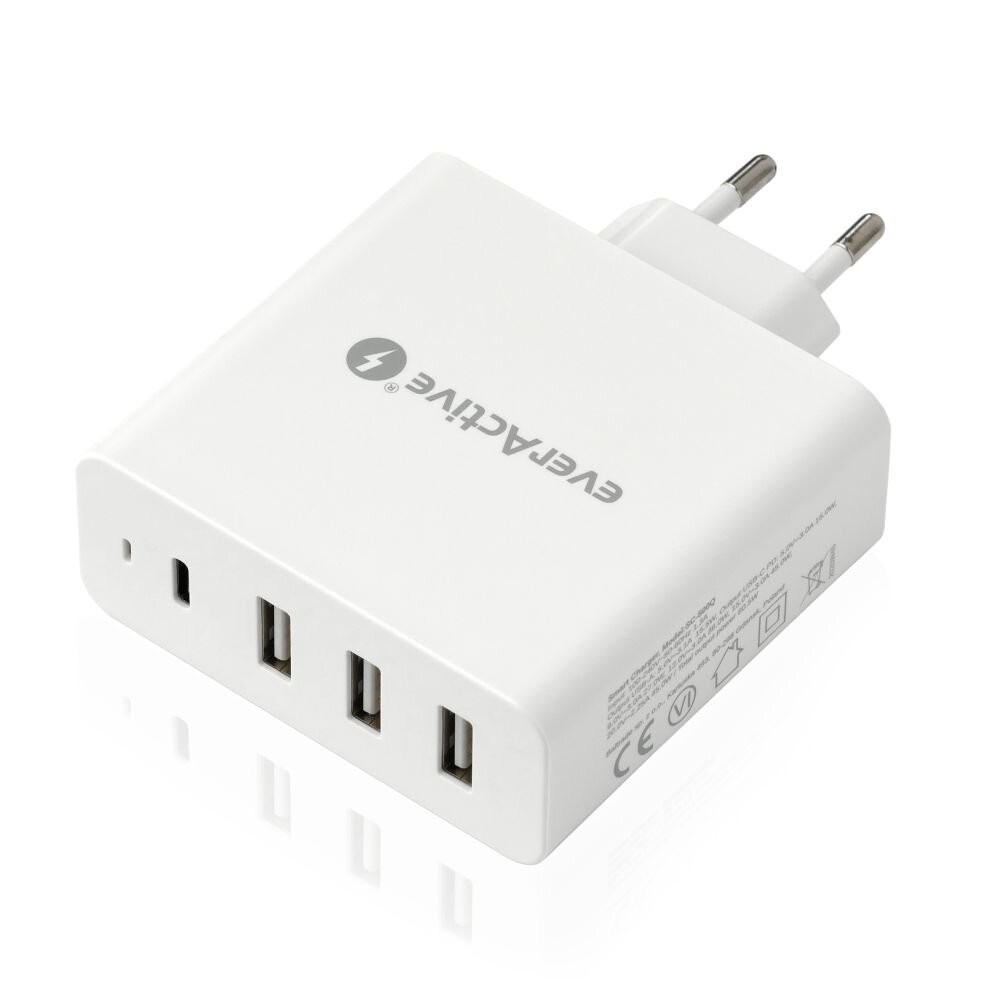 Ładowarka sieciowa everActive SC-500Q z 3 gniazdami USB oraz USB-C PD 60.5W