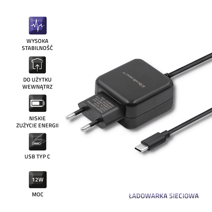 Ładowarka sieciowa 5V | 2.4A | 12W | USB typ C | Czarna