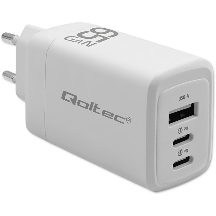 Ładowarka marki Qoltec została wyposażona w najnowocześniejszą technologię ładowania GaN polegającą na zastosowaniu nowego materiału półprzewodnikowego azotku galu. W zależności od rodzaju ładowanego urządzenia ładowarka dobiera odpowiednie napięcie i natężenie w zależności od parametrów baterii, chroniąc ją przed przegrzaniem.