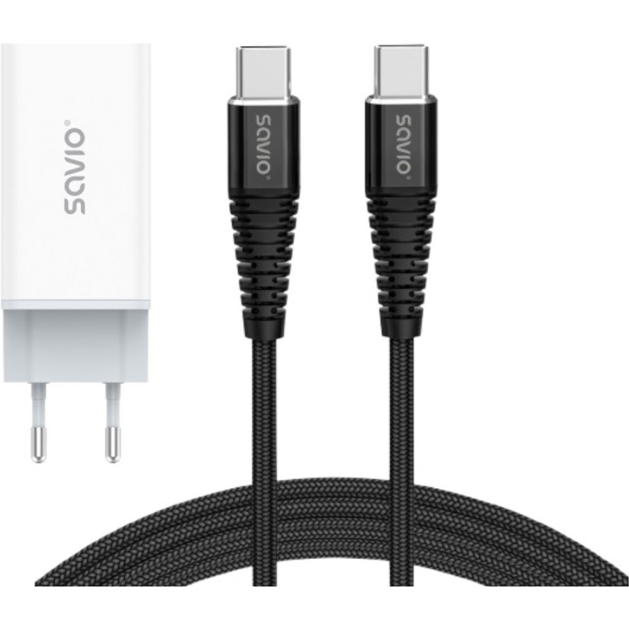 Ładowarka sieciowa 65W GaN LA-07 z kablem typu C-USB typ C 100W 1m, biało-czarna