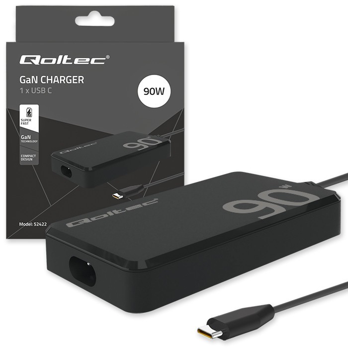 Ładowarka Qoltec wykorzystuje zaawansowaną technologię GaN (azotek galu) nowoczesny materiał półprzewodnikowy, który znacząco przewyższa tradycyjny krzem pod względem efektywności energetycznej. Dzięki temu urządzenie dostarcza maksymalną moc ładowania w krótszym czasie, przy jednoczesnym ograniczeniu strat energii i emisji ciepła. Dodatkowo wspiera standard USB-C Power Delivery, który zapewnia szybkie i precyzyjne ładowanie urządzeń zgodnie z ich wymaganiami. Może naładować baterię już w 30 minut do około 60%. Podsumowując oznacza to szybsze ładowanie, większą efektywność i niższe zużycie prądu.