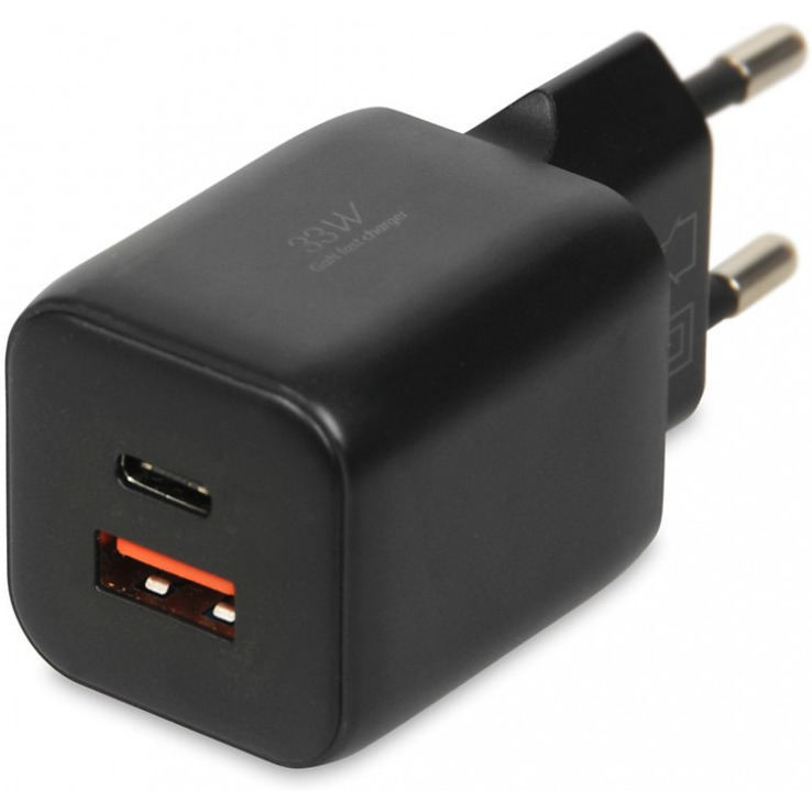 Moc 33W w kompaktowej ładowarce. Wykonana w technologii GaN, dziękiczemu nie grzeje się w czasie pracy. Wyposażona jest w port USB-C oraz port USB-A. Ładowarka wspiera wiele standardów ładowania dzięki czemu można sprawnie naładować urządzenia różnych producentów.