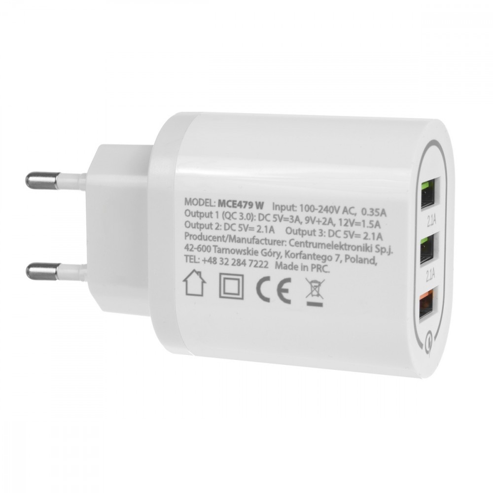 Ładowarka sieciowa QC 3xUSB MCE479W
