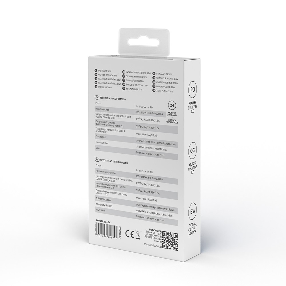 Ładowarka sieciowa USB Quick Charge, Power Delivery 3.0, 18W, LA-04