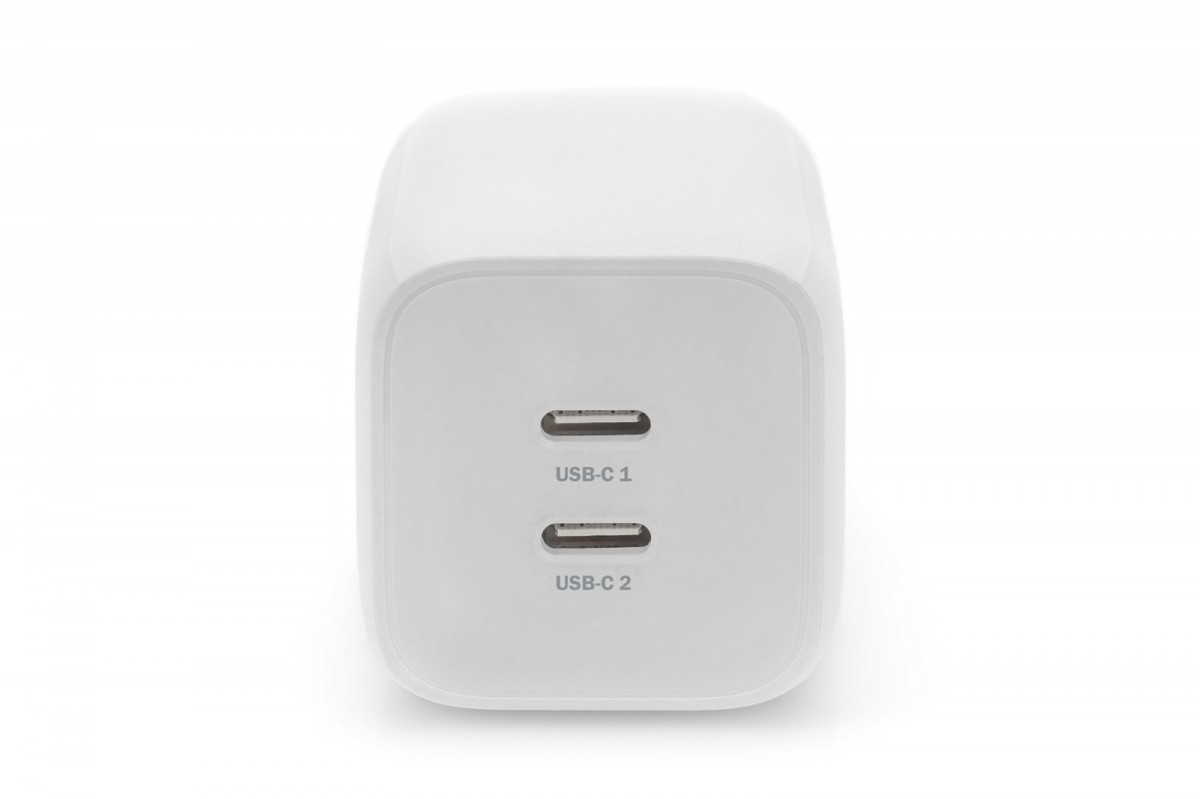 Adapter do ładowania z dwoma portami marki DIGITUS to wydajna ładowarka podróżna o maksymalnej mocy wyjściowej 65 W. Rozwiązanie jest wyposażone w 2 złącza typu C, obsługuje ładowanie z łączną mocą maks. 65 W, dzięki czemu może ładować 2 urządzenia (z mocą 45 W i 20 W) jednocześnie. Kompatybilność z wieloma protokołami (z funkcją PPS, obsługa Samsung S20, S20+, S10, S10+, Note10 i innych tabletów i smartfonów). Większe bezpieczeństwo zapewniają: zintegrowane zabezpieczenie przed przepięciami i zwarciem oraz zabezpieczenie nadprądowe. Ponadto zintegrowane zabezpieczenie przed przegrzaniem zapobiega możliwym przeciążeniom i uszkodzeniu ładowarki lub podłączonych urządzeń. Kompaktowa ładowarka/zasilacz sieciowy do urządzeń ze złączem USB-C, takich jak notebooki, smartfony lub tablety Obsługuje prąd ładowania do 65 W kompatybilność z funkcją Power Delivery (PD 3.0) oraz funkcję PPS Zintegrowane zabezpieczenie przed przepięciami / zabezpieczenie nadprądowe / zabezpieczenie przed zwarciem oraz zabezpieczenie przed przegrzaniem wraz z funkcją Auto-Recovery dla najwyższego poziomu bezpieczeństwa Idealny towarzysz podróży dzięki kompaktowym wymiarom Obudowa z materiału ognioodpornego