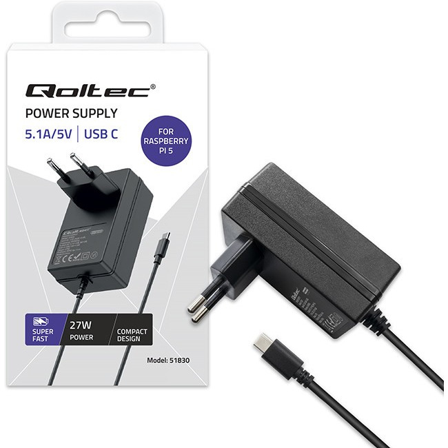 Ładowarka Super FAST PD for Raspberry PI 5 | USB-C | 27W | 5-12V | 1.8-5A | Czarna