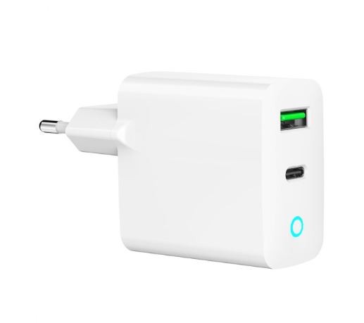 Ładowarka USB-A USB-C LED 20W PD QC3.0 biała