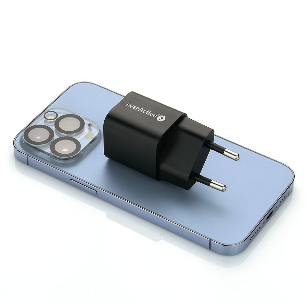 Ładowarka sieciowa everActive GaN SC-390QB z gniazdem USB QC3.0 oraz USB-C PD PPS 30W
