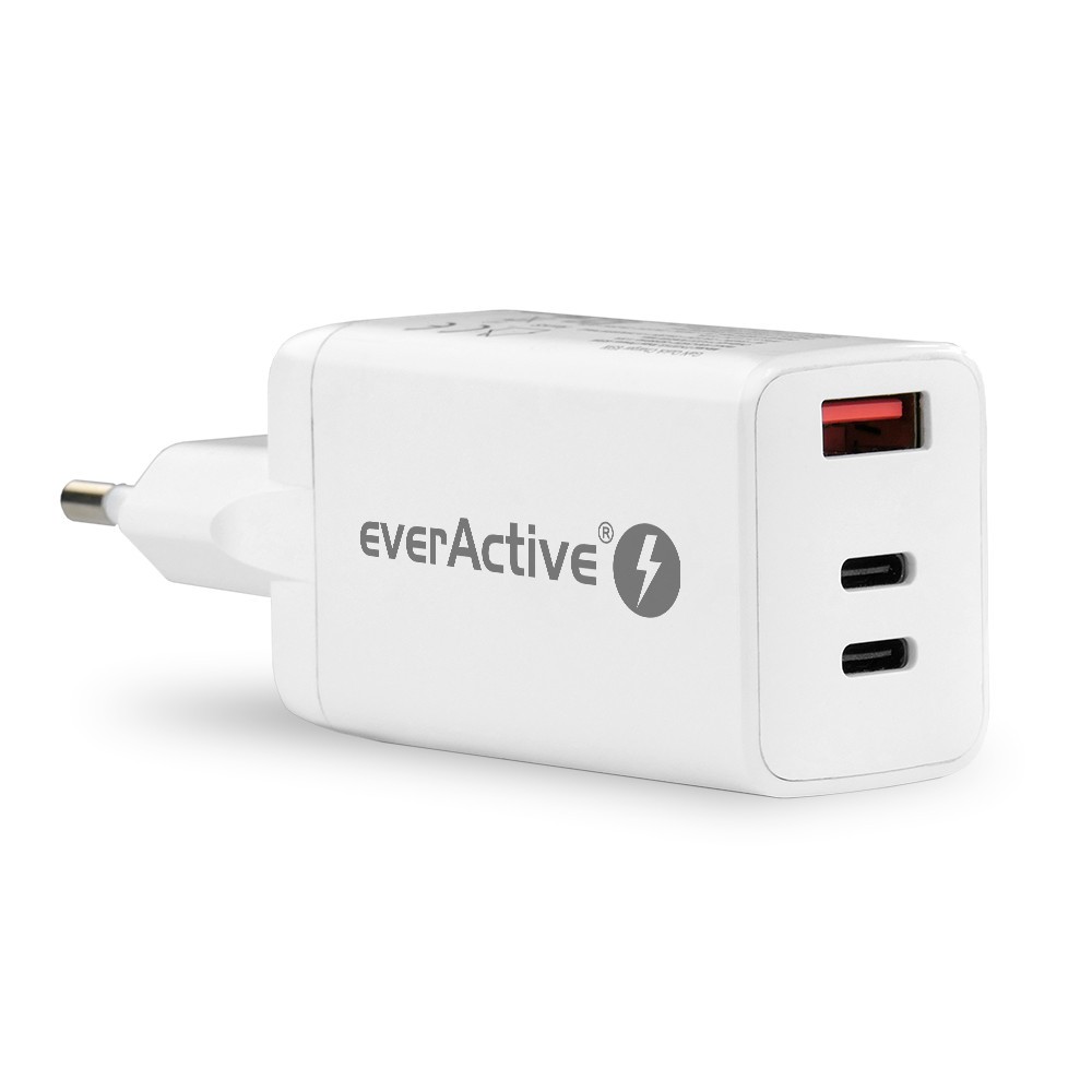 Ładowarka sieciowa everActive GaN SC-650Q z gniazdem USB QC4+ oraz 2x USB-C PD PPS 65W