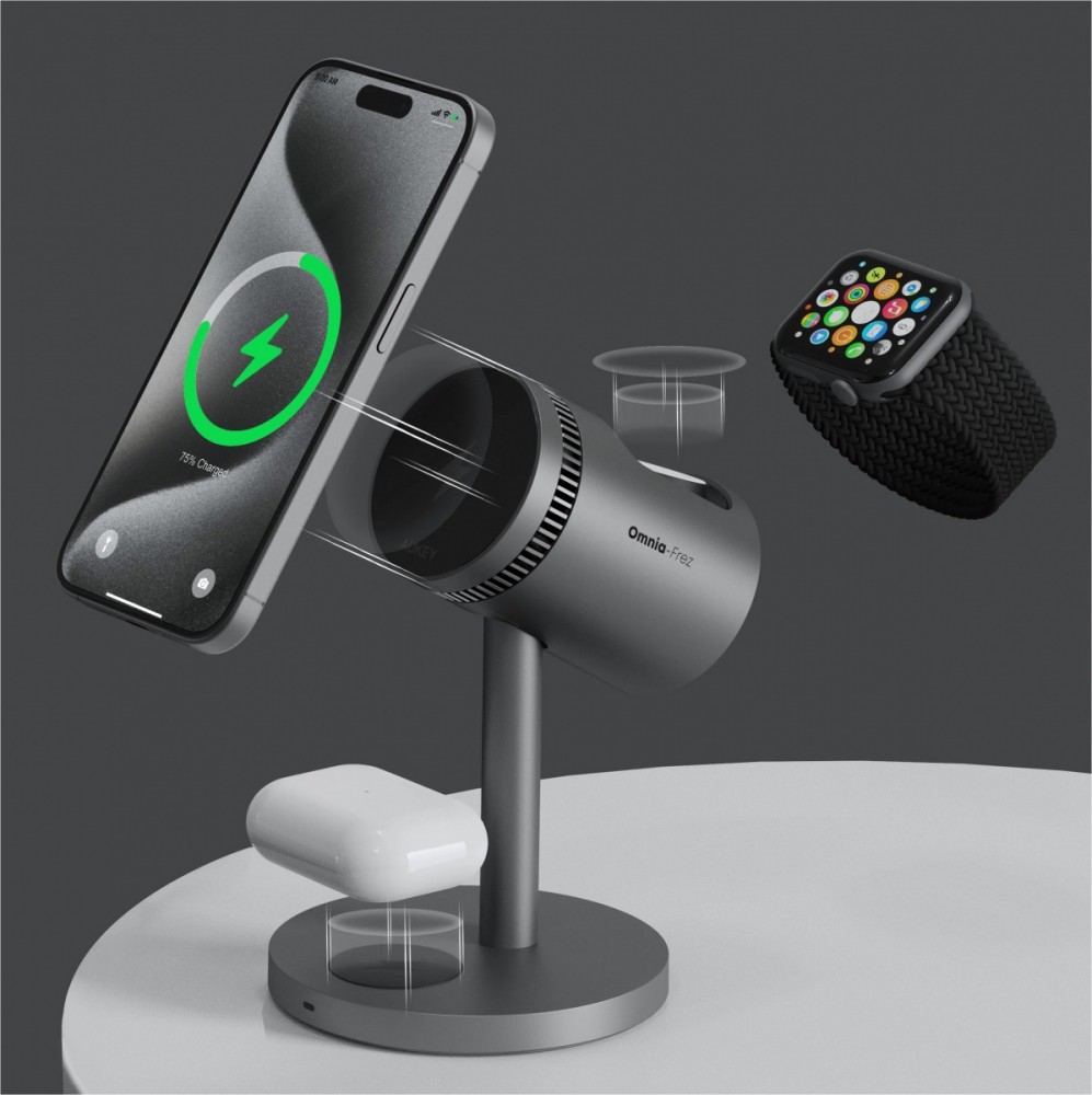 AUKEY MagFusion MagSafe 3w1 LC-MC311A bezprzewodowa chłodząca stacja ładująca 3w1 do iPhone, AirPods, Apple Watch i innych