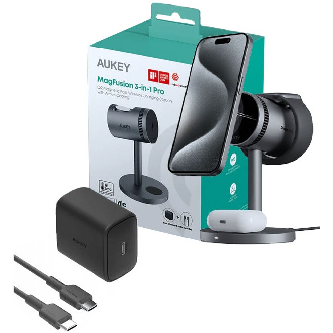 AUKEY LC-MC311A ŁADOWARKA BEZPRZEWODOWA 15W | 3w1 | USB-C | Qi2 (Qi 2.0) z AKTYWNYM CHŁODZENIEM