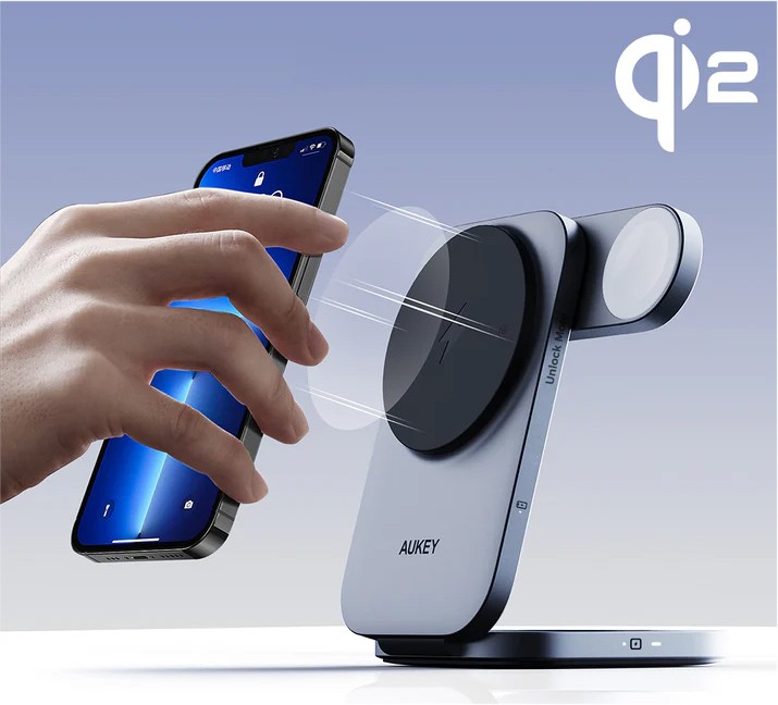 AUKEY LC-MC312 ŁADOWARKA BEZPRZEWODOWA 15W | 3w1 | USB-C | Qi2 (Qi 2.0)