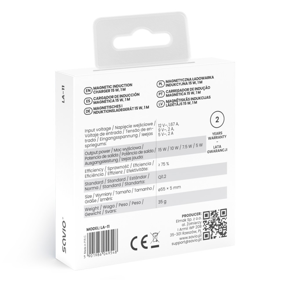 Akcesoria w zestawie: SAVIO LA-11 Bezprzewodowa ładowarka magnetyczna 15 W Instrukcja obsługi
