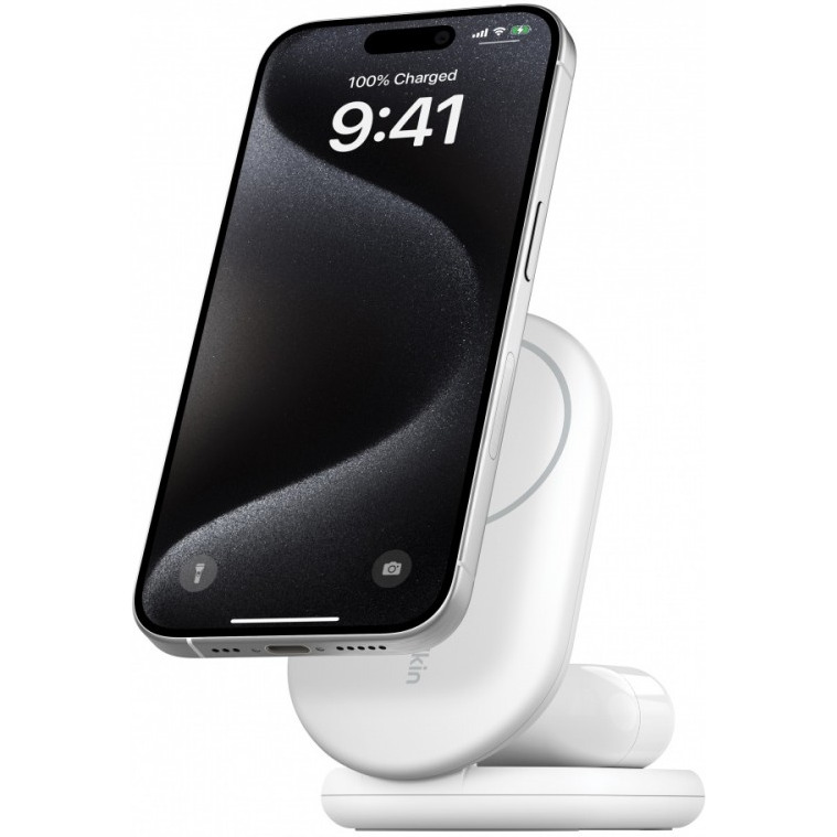 Magnetyczna podstawka ładująca BOOSTCHARGE 2w1 Qi2 15W biała składana