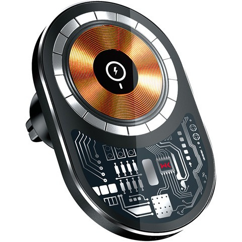 Cechy produktu: Materiał: ABS + PC + stop cynku Moc wyjściowa: 15W/10W/7.5W/5W Wyjście bezprzewodowe: 15W (maks.) Przezroczysta obudowa, widoczna technologia Współpracuje z magnetycznym systemem MagSafe Montowany do kratki nawiewu