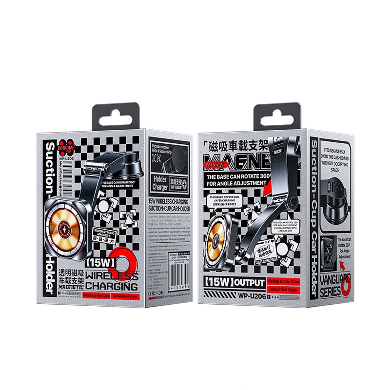 Uchwyt samochodowy o dużej mocy wyjściowej 15 W i bezprzewodowym ładowaniu z przezroczystym magnesem.