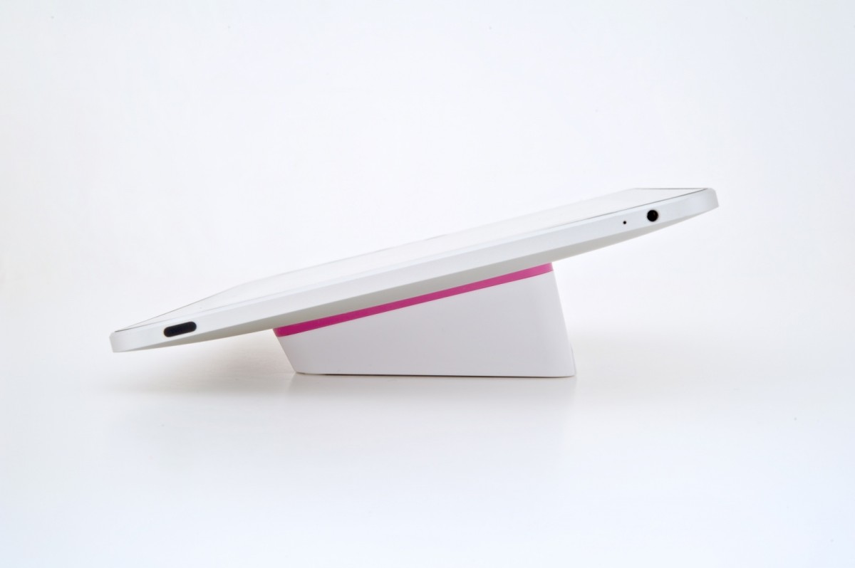 "Nest (Gniazdo) to idealna leżanka dla twojego tabletu. Można na nim umieścić tablet w pozycji poziomej dla większej wygody oglądania (gumowa wyściółka zabezpiecza tył)