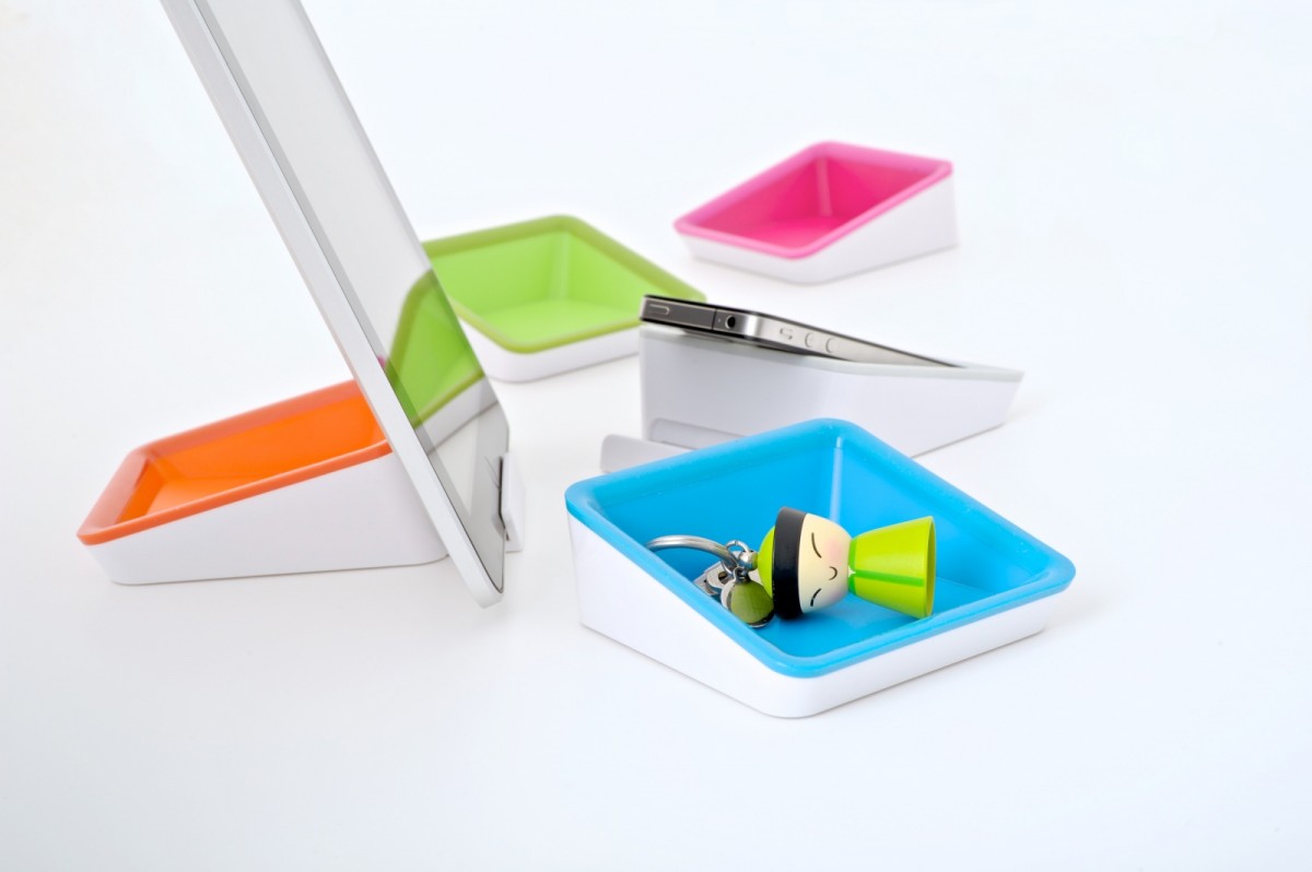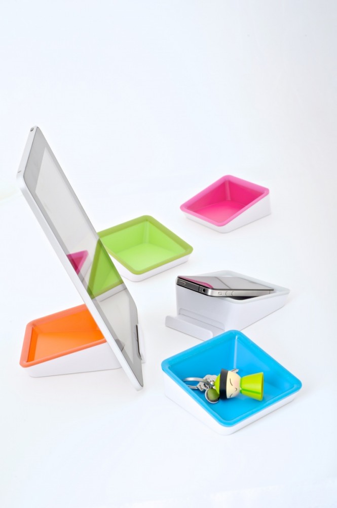 lub w pozycji pionowej (wysuwana podstawka utrzyma tablet lub inne urządzenie mobilne na miejscu). Nest jest doskonałym dodatkiem na biurko, zwiększając swoją funkcjonalność o możliwość przechowywania na nim kluczy, pendrive'ów czy innych małych akcesoriów. Dostępny w następujących kolorach: czarnym, białym, niebieskim, zielonym, pomarańczowym i różowym."