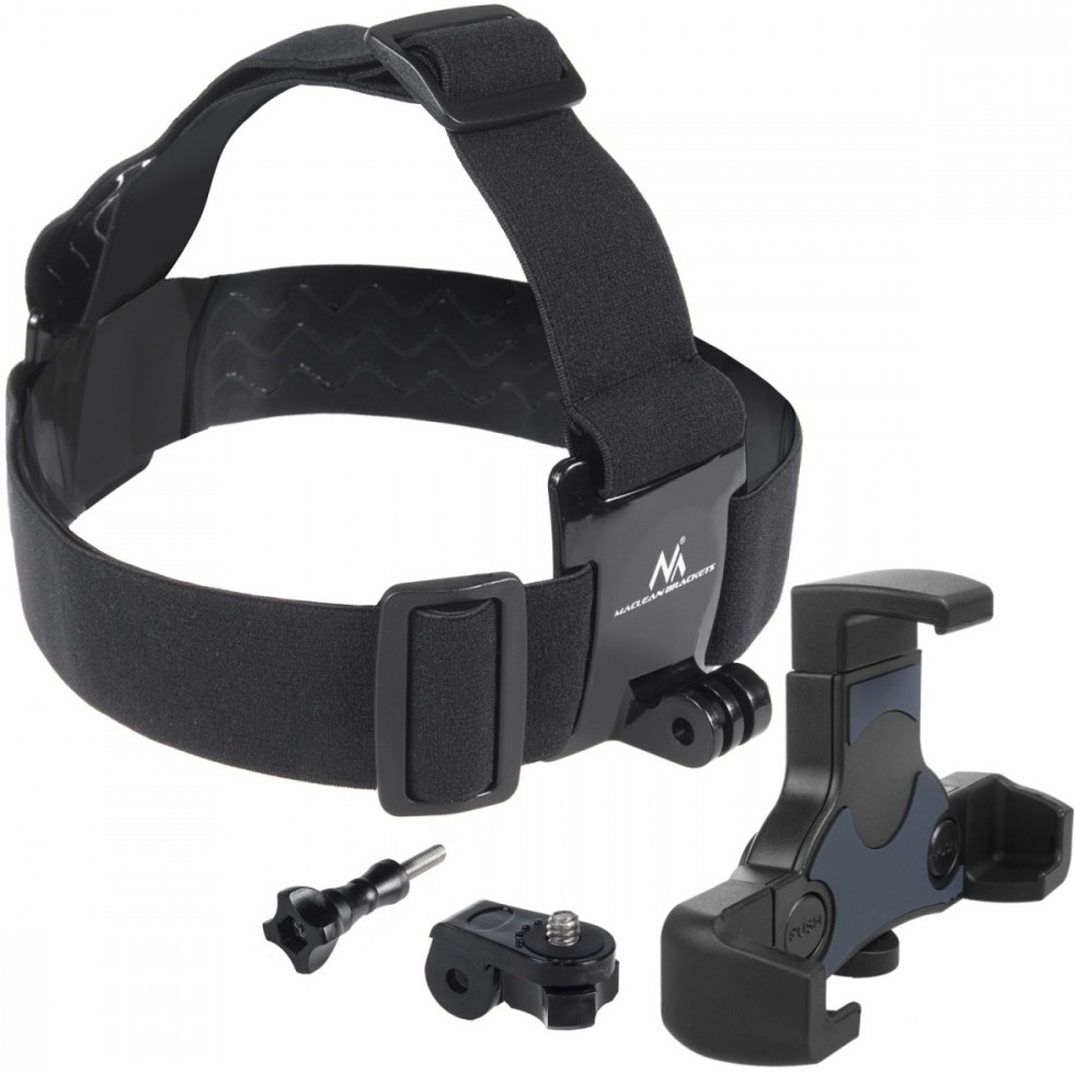 Akcesoria w zestawie: Sportowa opaska na głowę Maclean MC-448 Adapter z systemu GoPro na gwint 1/4'' Śruba montażowa Uchwyt na telefon Oryginalne opakowanie