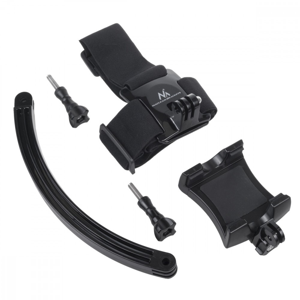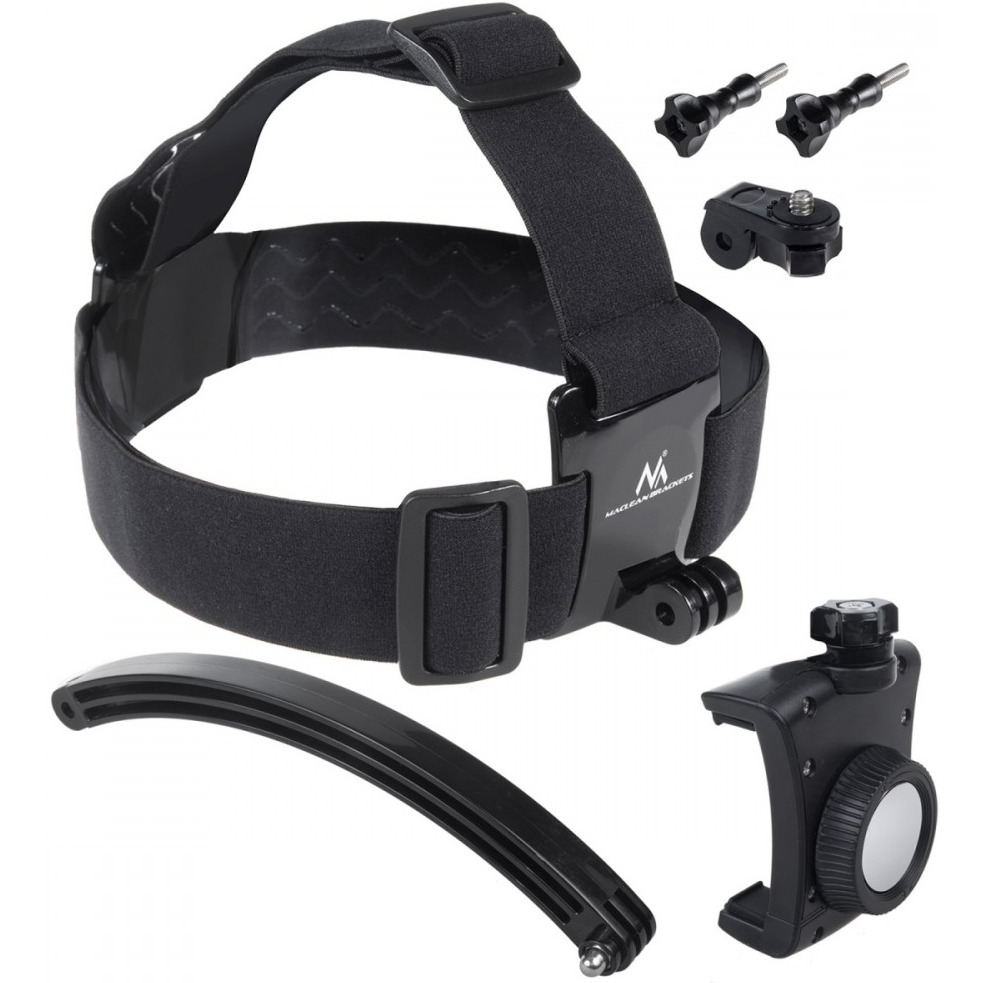 Akcesoria w zestawie: Sportowa opaska na głowę Maclean MC-447 Adapter z systemu GoPro na gwint 1/4'' 2x śruba montażowa Uchwyt na telefon Wysięgnik Oryginalne opakowanie