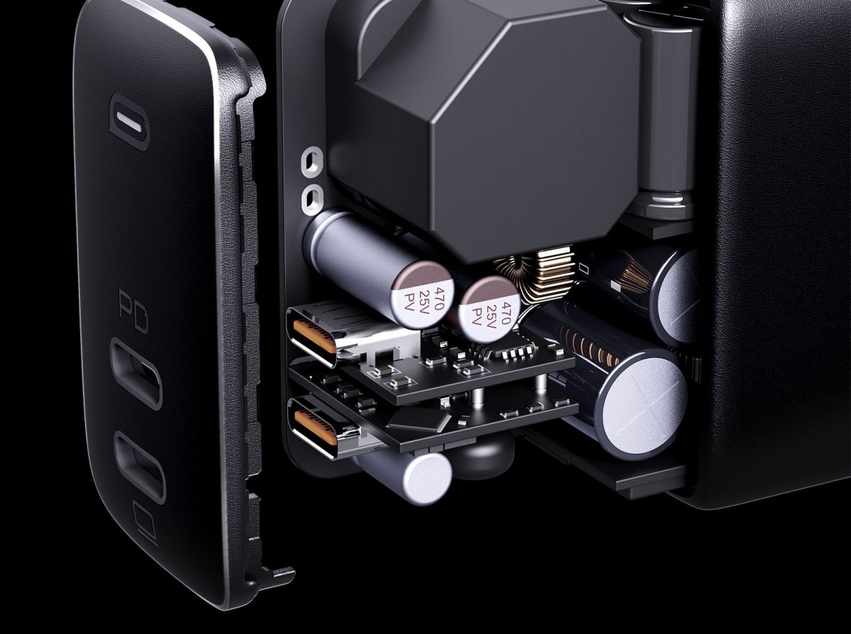Prezentowana ładowarka to sprzęt dla naprawdę wymagających użytkowników. Wyposażona została w szereg istotnych zabezpieczeń, dzięki którym ładowane urządzenia są doskonale chronione. Znalazły się w niej dwa porty USB-C, a zasilanie 65 W pozwala na podłączenie do niej jednocześnie na przykład smartfona i MacBooka Pro 13. Nawet trzykrotnie szybsze ładowanie urządzeń zapewnia zaawansowany układ scalony mocy GaN, a nad tym, by było ono optymalne czuwa technologia Dynamic Detect. Model jest ponadto o połowę mniejszy i lżejszy od tradycyjnych ładowarek 61 W.