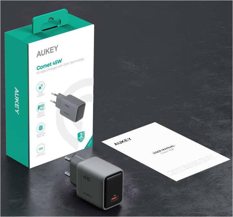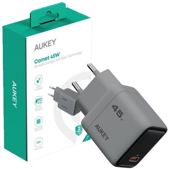 AUKEY PA-C2 Miniaturowa ultraszybka ładowarka sieciowa 45W 1xUSB-C Power Delivery 3.0 (USB-PD) (45W) Apple 2,4 A QC4+, QC3.0, PD3.0, AFC, PPS, FCP, SCP, SSCP PPS 5-11V 4.05A Uniwersalna! ładuje telefony, tablety i inne urządzenia