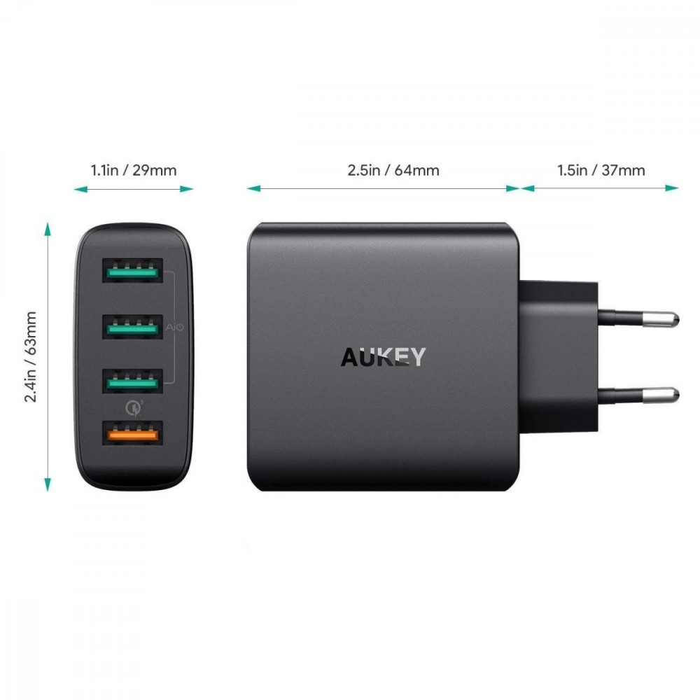 AUKEY PA-T18 Ładowarka sieciowa 42W 10.2A 4xUSB Quick Charge 3.0 Ładowarka posiada certyfikat Qualcomm Quick Charge 3.0 i wykorzystuje zaawansowaną technologię Qualcomm INOV...