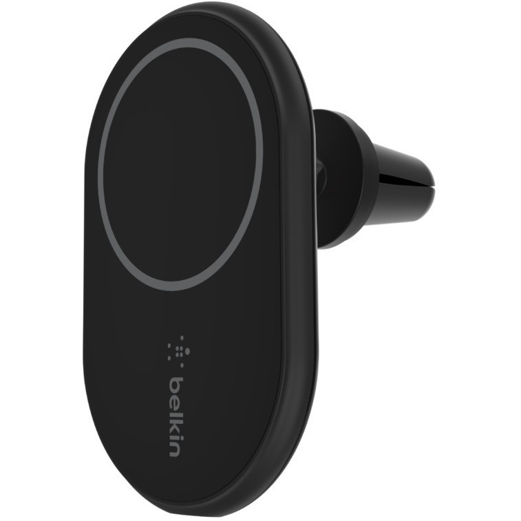 Ładuj urządzenie iPhone z serii 12 w prosty i bezpieczny sposób w samochodzie za pomocą zamontowanej na wywietrzniku, kompatybilnej ładowarki samochodowej MagSafe,...