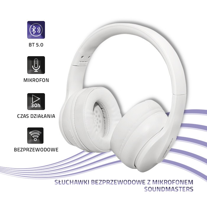 Słuchawki bezprzewodowe z mikrofonem | BT 5.0 AB | Białe
