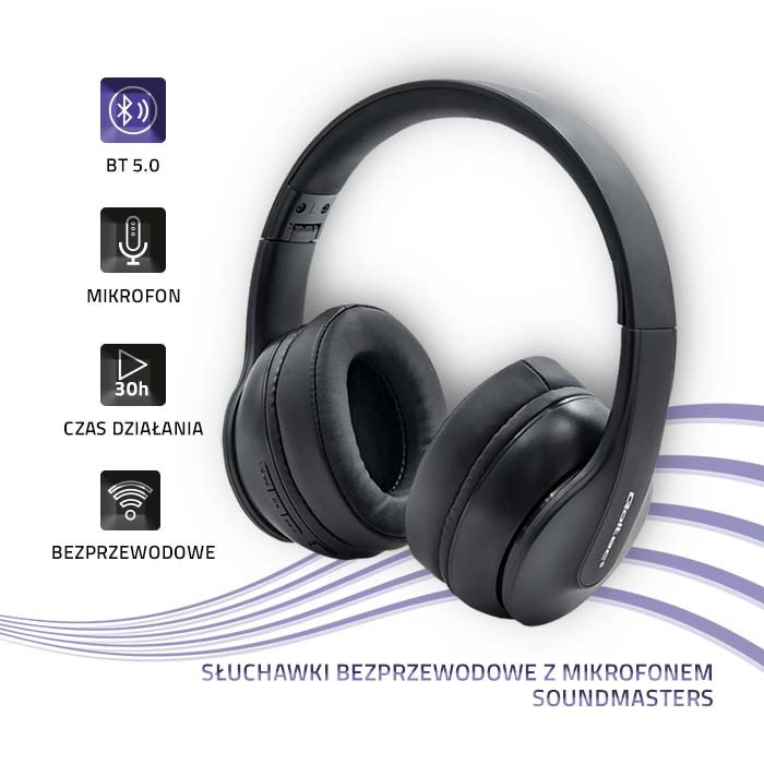Słuchawki bezprzewodowe z mikrofonem | BT 5.0 AB | Czarne