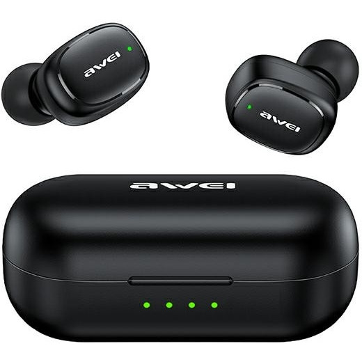 AWEI T13 Pro kompaktowe, ergonomiczne, bezprzewodowe słuchawki ze stacją ładowania. Dołączona do zestawu stacja dokująca, będąca power bankiem oraz ładowarką w jednym w prosty sposób rozszerza możliwości tych kompaktowych słuchawek.