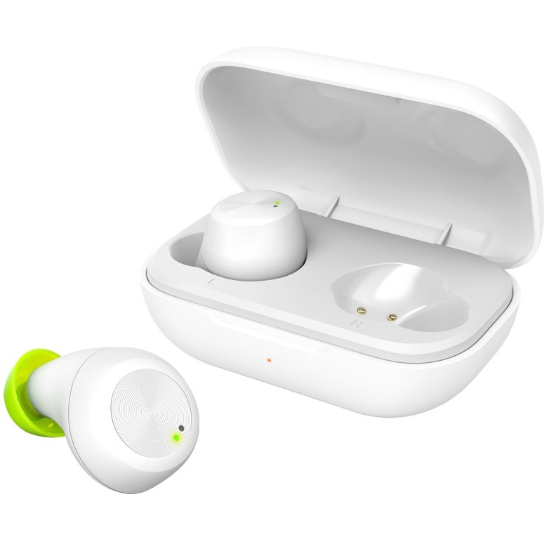 Cechy: Słuchawki dokanałowe z funkcją zestawu słuchawkowego Działanie na baterii: 4h Czas ładowania: 3 h Zasięg: 10 m Waga: 41 g Kolor: biały Impedancja mikrofonu: 2,2 k Impedancja słuchawek: 32 Klasa Bluetooth: Klasa 2 (max. 40 m) WBCV 75mV Wersja Bluetooth: 5.0 Zakres częstotliwości mikrofonu: 100 Hz - 5kHz Zakres częstotliwości słuchawek: 20 Hz -20 kHz Zakres fal: 2402-2480MHz Czułość mikrofonu: -42 dB 3 dB Dodatkowa funkcja: Answer button, Finger-Touch Sensor, QuickPair, Silikon Ear pads, True Wireless Dynamika: 96 dB +/- 3 dB