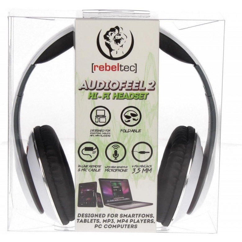 Słuchawki stereo z mikrofonem, 4pin mini jack AUDIOFEEL2 WHITE