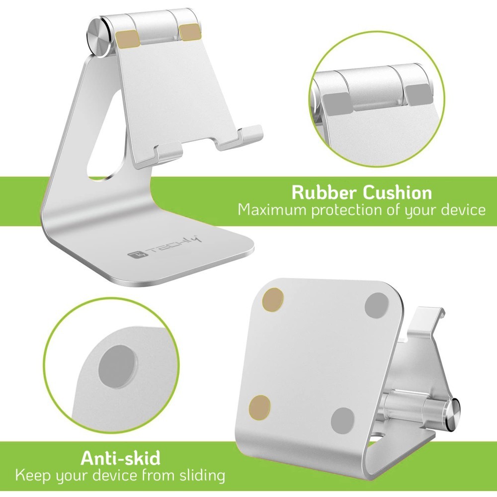 Praktyczny i elegancki aluminiowy stojak na biurko do smartfonów i tabletów, odpowiedni do każdego środowiska, takiego jak biuro i dom. Idealny do pracy, nauki, zdalnego nauczania, wideokonferencji lub spędzania wolnego czasu, np. czytania bezpośrednio z tabletu. Uchwyt ma z tyłu duży otwór, przez który można przełożyć kabel ładujący, a następnie wyciągnąć go unikając wszelkich przeszkód Kąt widzenia zapewnia wygodne oglądanie ekranu - idealny do czytania instrukcji, rozmów wideo ze znajomymi lub oglądania filmów Uniwersalny: wystarczająco mocny, aby pomieścić wszystkie typy i modele tabletów/telefonów komórkowych Możliwość regulacji kąta uchwytu telefonu komórkowego do 270° poprzez proste naciśnięcie i ustawienie urządzenia zarówno w pionie, jak i w poziomie, w zależności od potrzeb.