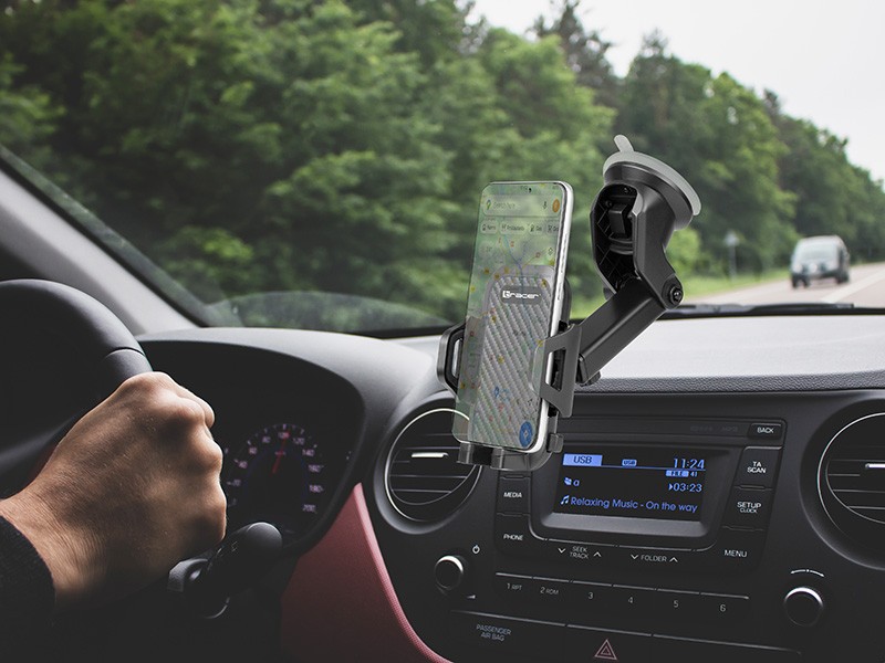 Uchwyt samochodowy Tracer przeznaczony jest do przymocowania do przedniej szyby lub kokpitu. Mocna przyssawka z silikonem zapewnia łatwy i szybki montaż, zdejmowanie uchwytu oraz regulację jego położenia.