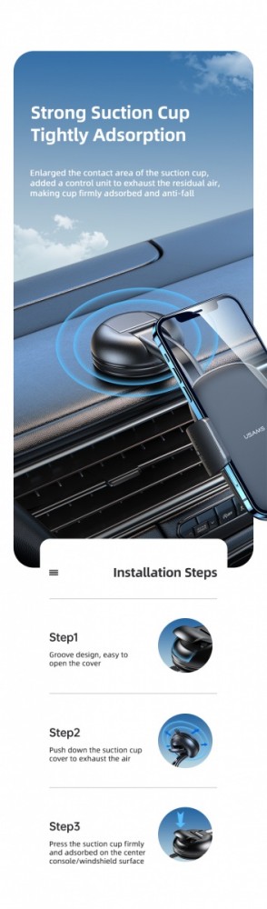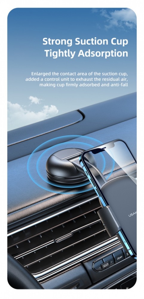Wykonany jest z materiału ABS i silikonu, który jest solidny i trwały Nadaje się do większości telefonów komórkowych o szerokości 52-95 mm i rozmiarze od 4,7 do 7,2 cala Może obracać się o 360 stopni, wygodnie regulować kąty widzenia Opływowy kształt, mocno trzyma telefon! Teleskopowe ramię zaciskowe + blokada , ze stabilną przyssawką Antypoślizgowa silikonowa powierzchnia kontaktowa, chroń swój telefon Wspornik telefonu z przyssawką można zainstalować na desce rozdzielczej lub przedniej szybie; Specyfikacja: Materiał: ABS + silikon; Nadaje się do: telefonów komórkowych 4.7-7.2 cala Zakres zacisku: 52-95mm Mocowanie: deska rozdzielcza, przednia szyba.
