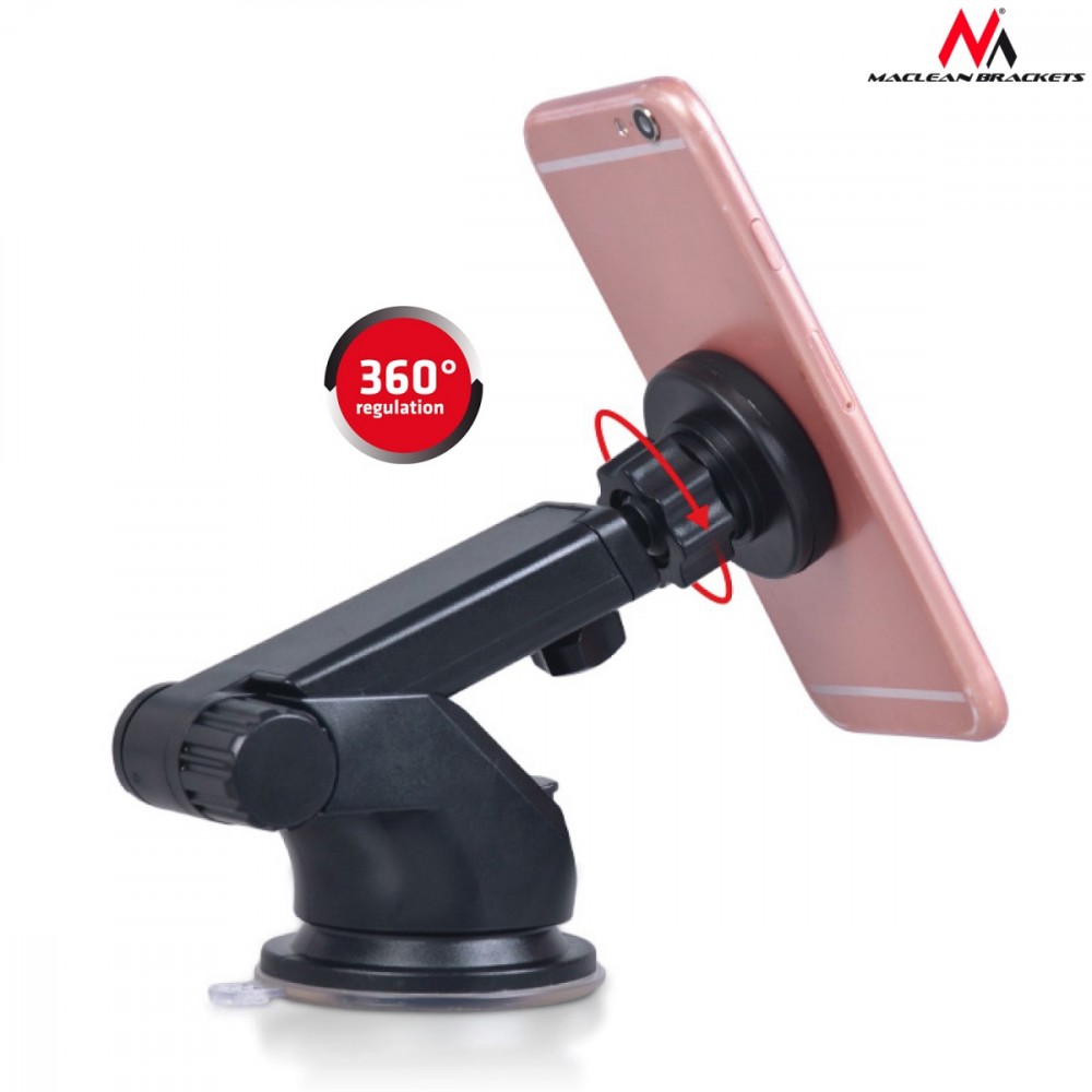 Magnetyczny uchwyt na przyssawkę to urządzenie ułatwiające obsługę telefonu podczas jazdy. Silne magnesy i wytrzymała podstawa zapewniają stabilną obsługę telefonu, nawet podczas jazdy po wyboistych drogach. Konstrukcja uchwytu pozwala na regulację położenia telefonu przy użyciu tylko jednej ręki.