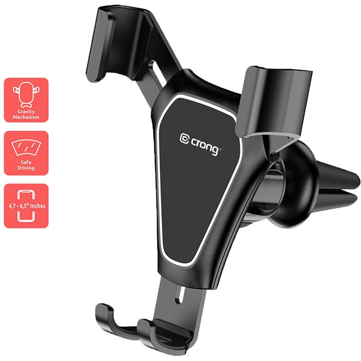 Grawitacyjny uchwyt samochodowy do smartfonów z ekranami od 4,7 do 6,5 mocowany do kratki wentylacyjnej. Specjalny mechanizm zamyka się samoczynnie pod wpływem ciężaru telefonu, dzięki czemu pozostaje on bezpieczny na czas podróży autem. Szczęki uchwytu Auto-Clip wyposażone zostały również w anty-poślizgowe wkładki, które ograniczają dodatkowo drgania i wibracje.