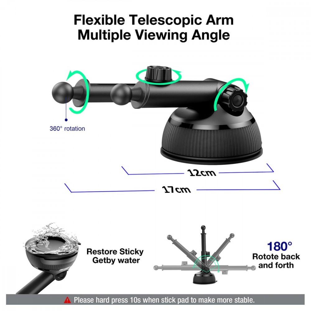 Dzięki zastosowanym czujnikom zbliżeniowym oraz czujnikiem grawitacyjnym smartfon automatycznie przypina się do stacji ładującej i szybko zaczyna się ładować. Nawet na wyboistych drogach pozostaje zakotwiczony w stacji ładującej. Działa nie tylko z najnowszymi iPhone'ami, ale ze wszystkimi smartfonami obsługującymi Qi! Dzięki mocy wyjściowej do 15W ładowarka Maclean MCE129 niezawodnie i szybko ładuje bezprzewodowo urządzenie z systemem iOS lub Android. Różne moce wyjściowe pozwalają na zasilanie różnych urządzeń odpowiednią mocą. Po prostu przyłóż tylną część urządzenia do ładowarki, a wbudowane czujniki wykryją urządzenie i automatycznie zamkną aluminiowe ramiona i zablokują urządzenie w optymalnej pozycji. Wybierz jedną z dwóch różnych opcji montażu. Za pomocą dołączonego klipsa wentylacyjnego możesz pewnie zamontować MCE129 w większości otworów wentylacyjnych. Jeśli klips nie pasuje do żaluzji, po prostu przymocuj urządzenie do przedniej szyby lub deski rozdzielczej pojazdu za pomocą dużej przyssawki. Praktyczne przeguby kulowe na obu uchwytach umożliwiają obracanie telefonu o 360 °. Dzięki temu możesz łatwo dostosować najbardziej wygodny i optymalny kąt widzenia dla swojego wyświetlacza. W zestawie znajduje się odpowiedni kabel USB-C o długości aż 1,5m. Dzięki dużemu kondensatorowi ramiona działają jeszcze do 1 godziny po odcięciu zasilania, więc łatwo wyjmiesz telefon, nawet jeśli zabrakło prądu. Aluminiowe ramiona wyposażone są w miękką i przyjazną w dotyku gąbkę, która zabezpieczy smartfon przed porysowaniem, a tym samym pewnie przytrzyma urządzenie.
